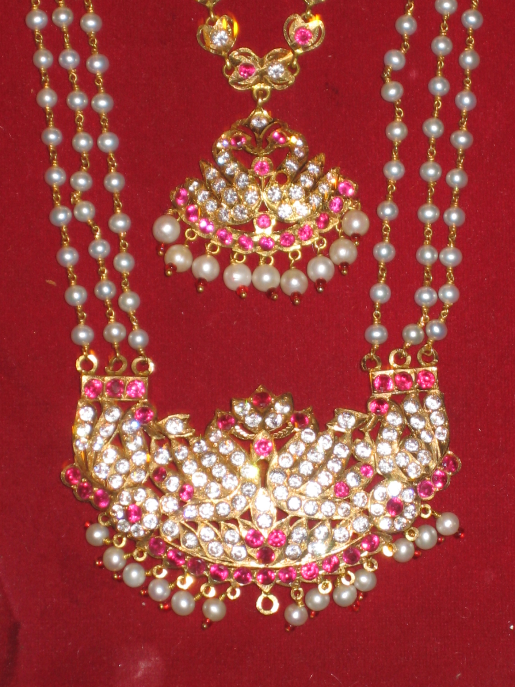 Im Vordergrund zwei fünflichtige, von einem Pfau bekrönte Öllampen. Der Hindupriester trägt goldene Ketten als Zeichen seiner Würde. Das Zeichen seiner Priesterschaft ist die vorne von seinem Wickelrock ausgehende bis über den Rücken laufende Kordel, die aus zwei Fäden besteht und für die Ehe um einen Faden sowie für jedes geborene Kind um einen weiteren Faden ergänzt wird. Auf dem improvisierten Altar befindet sich die metallene Figur des Gottes Ganesha, geschmückt mit einer grün-goldenen Stola. Davor zwei Butterlampen, in deren Schalen sich natürliche Blumen befinden. Dazwischen ist der Teller mit den Gaben aufgestellt. Vorne befindet sich eine dreistufige Öllampe, die für die Zeremonie Verwendung findet. Da der Priester die Puja in Sanskrit (Sprache) hält, werden seine Worte von einer Dolmetscherin aus Köln übersetzt.