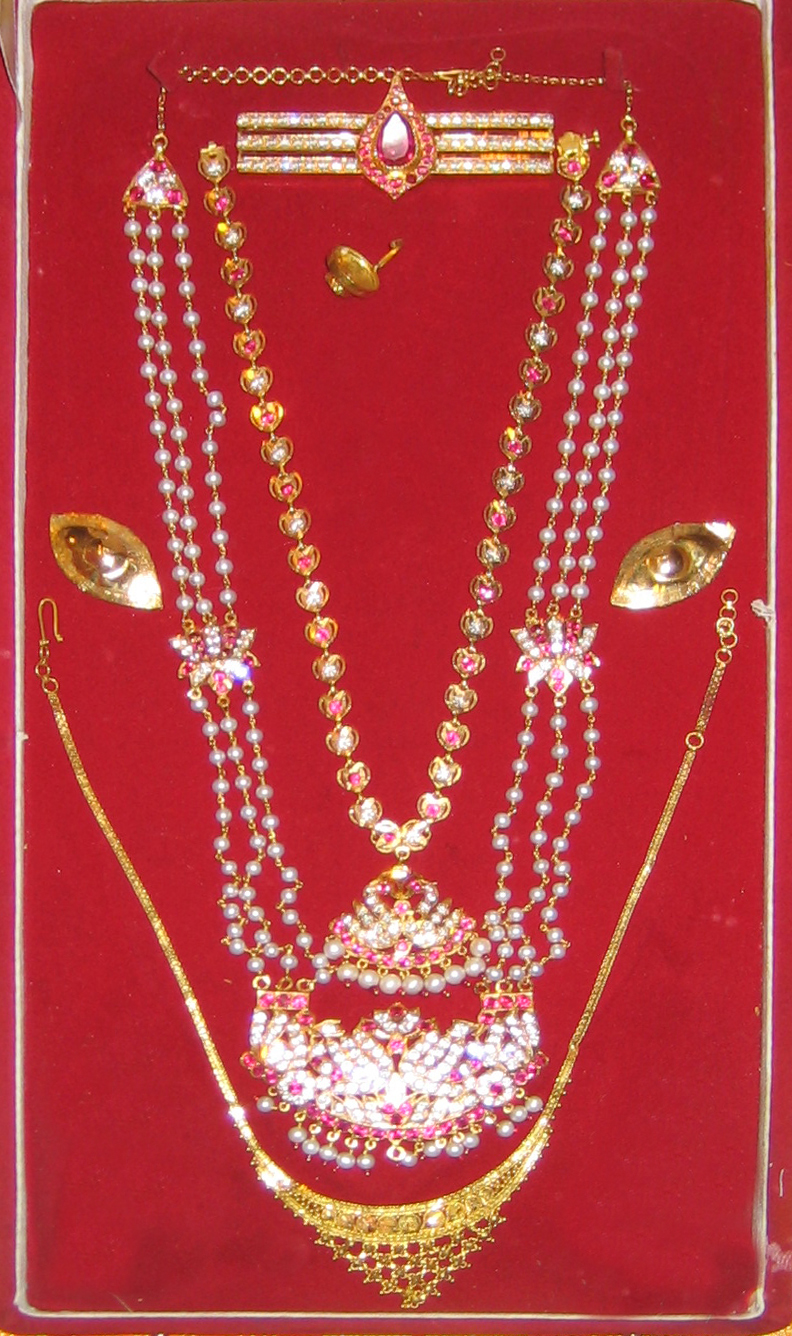 Auf dem Podium die zeremoniellen Gegenstände und Gaben zur Feier der Puja (hinduistische Andacht).